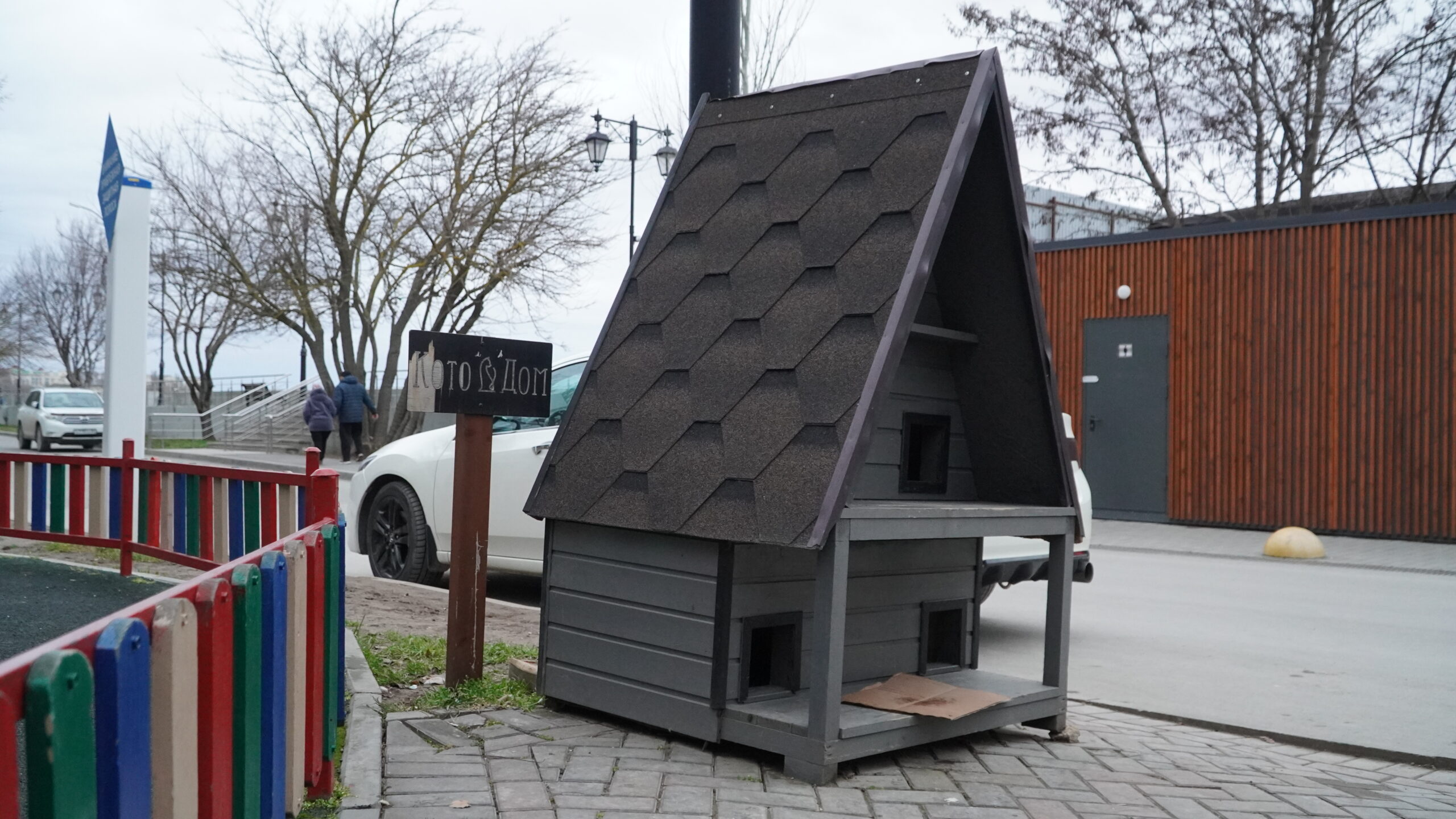 Рядом с кофейней также установили большой «Кошкин дом», чтобы в холодные дни животные могли согреться, пережидая непогоду. Сотрудники заведения делают всё возможное для комфорта пушистиков, а руководство выделяет деньги на покупку корма. Если животное заболевает, то действуют сообща: собирают средства и отвозят в ветеринарную клинику.